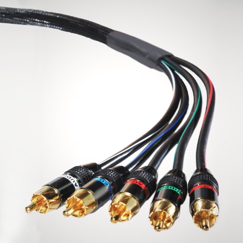 Constructed with coaxial cable that is dual shielded with copper braid over aluminum foil. Jacket is soft and flexible PVC, encased in a high-grade durable nylon sleeve. Professional grade quality heavy duty connectors are 24k gold plated for ultimate conductivity. The fourth and fifth cables are used to connect left and right stereo audio.